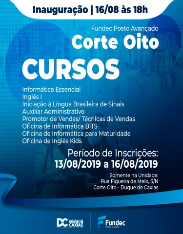 Começam hoje (13/08) e vão até sexta-feira (16/08) as inscrições para o processo seletivo para nova unidade da Fundec – Posto Avançado Corte Oito.