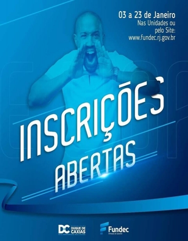 FUNDEC ABRE INSCRIÇÕES PARA 10.283 VAGAS EM CURSOS GRATUITOS E LANÇA 12 NOVOS CURSOSA Prefeitura de Duque de Caxias, através da Fundec – Fundação de Apoio à Escola Técnica, Ciência, Tecnologia, Esporte, Lazer, Cultura e Políticas Sociais, irá iniciar no dia 03/01 o período de novas matrículas para seus 102 cursos, distribuídos pelas suas 22 unidades da fundação presentes em todo o município. As inscrições vão de 03 a 23/01 e são oferecidas 10.283 vagas para candidatos a partir dos 10 anos de idade. Os cursos têm duração de seis meses a um ano, são certificados e gratuitos. A Fundec oferece ainda o material utilizado nas aulas.