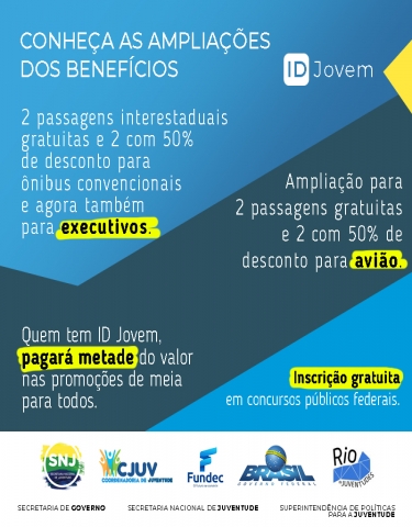 MAIS BENEFÍCIOS PARA A JUVENTUDEO programa ID JOVEM vai ter os seus benefícios ampliados, buscando trazer mais oportunidades e menos desigualdades para a juventude brasileira de baixa renda.