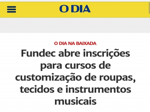 FUNDEC NA MÍDIAO jornal O Dia da última terça-feira (20), trouxe informações sobre como se inscrever nos cursos gratuitos da FUNDEC, disponíveis para a população nas suas unidades de ensino.