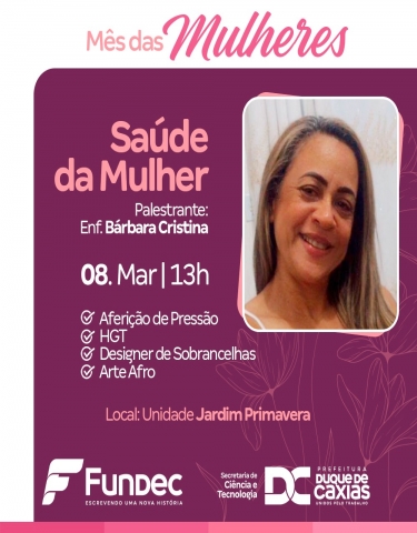A palestra foi conduzida pela Enf. Bárbara Cristina, que abordou temas relativos as mulheres, em especial, sobre os cuidados com a saúde física e mental. Cerca de 80 mulheres estiveram presentes e puderam sanar suas dúvidas, serem ouvidas, dividir as conquistas e serem lembradas de sua importância.
