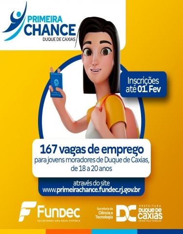 Foi pensando nesses dados que a prefeitura de Duque de Caxias criou o projeto para aumentar as atividades de emprego na Baixada Fluminense e possibilitar que os jovens conquistem sua autonomia através do seu primeiro emprego. O Programa Primeira Chance oferece oportunidade de emprego para jovens e moradores do município, que querem dar o pontapé inicial para a construção de sua carreira profissional.